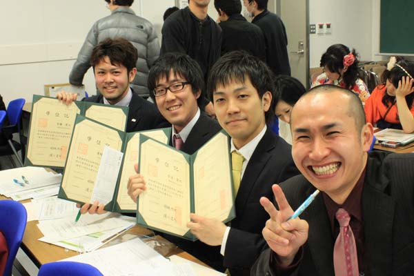 皆さん、学位記を手に、はじける笑顔を見せてくれました。